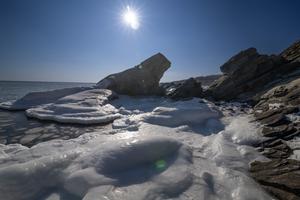 (260202) -- VLADIVOSTOK, 2 febrero, 2026 (Xinhua) -- Imagen del 1 de febrero de 2026 de un paisaje de Sun Beach, en Vladivostok, Rusia. Sun Beach es famosa por sus formaciones rocosas únicas, algunas de las cuales se asemejan a animales como focas y sapos. (Xinhua/Andrey Matveenko) (oa) (ah) (vf)