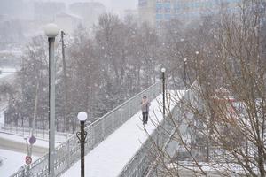 (250128) -- VLADIVOSTOK, 28 enero, 2025 (Xinhua) -- Una mujer cruza un paso elevado en medio de la nieve, en Vladivostok, Rusia, el 28 de enero de 2025. (Xinhua/Guo Feizhou) (jg) (ra) (vf)