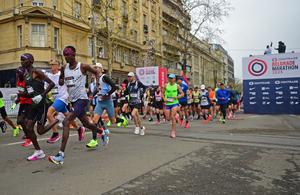 (250407) -- BELGRADO, 7 abril, 2025 (Xinhua) -- Imagen del 6 de abril de 2025 de competidores iniciando el 38 maratón de Belgrado, en Belgrado, Serbia. (Xinhua/Predrag Milosavljevic) (oa) (ah) (vf)