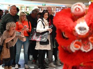 (250129) -- BEIJING, Jan. 29, 2025 (Xinhua) -- Inbound tourists arriving by cruise ship watch a lion dance performance in Shanghai, east China, Jan. 8, 2025. (Xinhua/Chen Aiping)