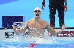 (250802) -- SINGAPUR, 2 agosto, 2025 (Xinhua) -- Maxim Grousset, de Francia, festeja al término de la final de 100m mariposa masculino de natación en el Campeonato Mundial de Deportes Acuáticos, en Singapur, el 2 de agosto de 2025. (Xinhua/Xue Yuge) (rtg) (da)