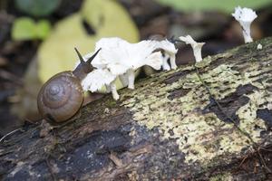 (250303) — SINGAPUR, 3 marzo, 2025 (Xinhua) — Imagen del 2 de enero de 2025 de un caracol alimentándose de hongos en la Reserva Natural de la Cuenca Central de Singapur. El Día Mundial de la Vida Silvestre se celebra anualmente el 3 de marzo. Singapur tiene muchas reservas naturales, brindando hábitats a animales salvajes y plantas. (Xinhua/Then Chih Wey) (rtg) (ah) (vf)