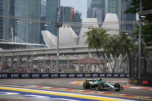 (251003) -- SINGAPUR, 3 octubre, 2025 (Xinhua) -- El piloto español de la escudería Aston Martin, Fernando Alonso, compite durante la primera sesión de práctica del Gran Premio de Singapur 2025 de Fórmula 1, en Singapur, el 3 de octubre de 2025. (Xinhua/Then Chih Wey) (oa) (ra) (ce)