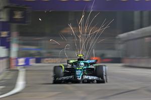 (251004) -- SINGAPUR, 4 octubre, 2025 (Xinhua) -- Imagen del 3 de octubre de 2025 del piloto español de la escudería Aston Martin, Fernando Alonso, compitiendo durante la segunda sesión de práctica del Gran Premio de Singapur 2025 de Fórmula 1, en Singapur. (Xinhua/Then Chih Wey) (jg) (rtg) (ce)