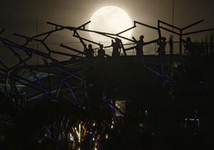(251105) -- SINGAPUR, 5 noviembre, 2025 (Xinhua) -- La luna llena es vista sobre los Jardines de la Bahía, en Singapur, el 5 de noviembre de 2025. (Xinhua/Then Chih Wey) (ah) (ra) (ce)