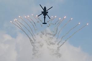 (260201) -- SINGAPUR, 1 febrero, 2026 (Xinhua) -- Un helicóptero AH-64D Apache de la Real Fuerza Aérea de la República de Singapur realiza una presentación durante la vista previa para medios de la edición 10 del Salón Aeronáutico, en Singapur, el 1 de febrero de 2026. El salón aeronáutico se celebrará del 3 al 8 de febrero en Singapur. (Xinhua/Then Chih Wey) (oa) (ah)