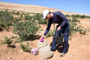 (250617) — AL-MARAH, 17 junio, 2025 (Xinhua) — Imagen del 14 junio de 2025 de un agricultor cosechando pétalos de rosa de Damasco, en el poblado de Al-Marah, Siria. Símbolo del patrimonio cultural y botánico de Siria, la rosa de Damasco ha florecido durante siglos en este agreste paisaje. Esta delicada flor, antaño pilar económico del poblado y motivo de orgullo mundial, lucha ahora por sobrevivir en medio de los cambiantes patrones climáticos. (Xinhua/Monsef Memari) (oa) (ra) (ce)
