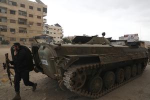 (250430) -- ASHRAFIYAT SAHNAYA, 30 abril, 2025 (Xinhua) -- Un miembro de seguridad siria es visto frente a un vehículo militar, en el poblado de Ashrafiyat Sahnaya, en el suroeste de Damasco, Siria, el 30 de abril de 2025. La cifra de muertos de los enfrentamientos sectarios actuales en los suburbios del sur de Damasco ascendió a 39, entre ellos 16 miembros del personal de seguridad, después de que fracasaron los esfuerzos de alto al fuego y se reanudó la lucha intensa en Ashrafiyat Sahnaya, informaron el miércoles funcionarios y grupos de observadores. (Xinhua/Str) (ah) (ra) (ce)