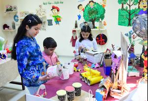 (251103) — DAMASCO, 3 noviembre, 2025 (Xinhua) — Imagen del 2 de noviembre de 2025 de niños asistiendo a una exposición de arte con obras realizadas por niños con materiales reciclados, en Damasco, Siria. La exposición marcó el inicio del Día Nacional del Medio Ambiente de Siria bajo el lema «Protegemos lo que hemos perdido y restauramos lo que queda: Siria hacia un medio ambiente sostenible». (Xinhua/Ammar Safarjalani) (oa) (ah) (ce)