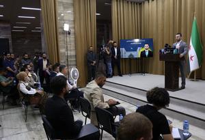 (250624) -- DAMASCO, 24 junio, 2025 (Xinhua) -- El portavoz de Asuntos Interiores sirio, Noureddin al-Baba (d), habla en una conferencia de prensa, en Damasco, Siria, el 24 de junio de 2025. El grupo Estado Islámico (EI) y los remanentes de otras facciones extremistas siguen siendo el mayor desafío para la seguridad de Siria, dijo el martes Noureddin al-Baba, tras la detención de sospechosos vinculados a un mortal atentado explosivo suicida en la Iglesia Mar Elias en Damasco. (Xinhua/Ammar Safarjalani) (jg) (ra) (ce)
