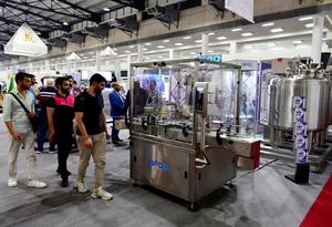(250511) — DAMASCO, 11 mayo, 2025 (Xinhua) — Imagen del 10 de mayo de 2025 de asistentes observando una máquina exhibida en la exposición Techno Build, en Damasco, Siria. La feria, que muestra una amplia gama de servicios y soluciones para la edificación, la construcción y la infraestructura, atrajo a más de 500 empresas locales e internacionales. (Xinhua/Ammar Safarjalani) (oa) (da)