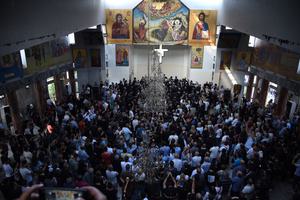 SIRIA-DAMASCO-IGLESIA-BOMBARDEO-CEREMONIA CONMEMORATIVA