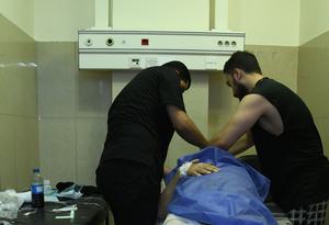 (250623) -- DAMASCO, 23 junio, 2025 (Xinhua) -- Imagen del 22 de junio de 2025 de un hombre herido en un bombardeo suicida dirigido a la iglesia Mar Elias, recibiendo tratamiento médico, en el distrito de Dweilaa, en las afueras de Damasco, Siria. Un atacante suicida se hizo detonar dentro de la iglesia Mar Elías en Damasco, durante la misa dominical, lo que dejó al menos 19 muertos y decenas de heridos, informó el Observatorio Sirio para los Derechos Humanos. Las autoridades de Salud sirias colocaron el número de muertes oficial en 13, con 53 más heridas. (Xinhua/Ammar Safarjalani) (rtg) (oa) (ce)
