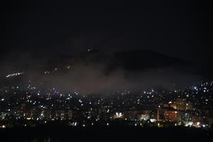 (250502) — DAMASCO, 3 mayo, 2025 (Xinhua) — Humo se eleva desde el Monte Qasioun después de un ataque aéreo israelí, en Damasco, Siria, el 3 de mayo de 2025. La actividad aérea israelí se intensificó el viernes en toda Siria, con ataques de aviones de combate reportados en la capital Damasco, así como en las provincias centrales y occidentales, y se observaron actividades con drones en varias provincias, indicaron medios locales y un grupo observador. (Xinhua/Monsef Memari) (rtg) (ra) (ce)
