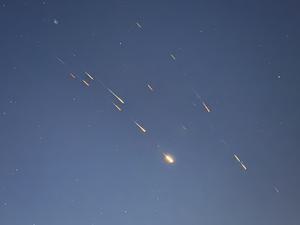 (250615) -- DAMASCO, 15 junio, 2025 (Xinhua) -- Imagen del 14 de junio de 2025 de rastros de misiles vistos sobre Damasco, Siria, durante los ataques con misiles de Irán en contra de Israel. El Cuerpo de los Guardianes de la Revolución Islámica (IRGC, por sus siglas en inglés) lanzó la noche del sábado una "operación ofensiva combinada a gran escala" contra Israel, involucrando un número significativo de misiles y drones, reportó el medio oficial de noticias del IRGC, Sepah News. (Xinhua/Hummam Sheikh Ali) (rtg) (oa) (da)