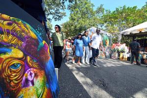(250216) -- COLOMBO, 16 febrero, 2025 (Xinhua) -- Personas visitan Kala Pola 2025, una feria de arte al aire libre, en Colombo, Sri Lanka, el 16 de febrero de 2025. (Xinhua/Ajith Perera) (oa) (da)
