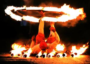 (250805) -- KANDY, 5 agosto, 2025 (Xinhua) -- Imagen del 4 de agosto de 2025 de un bailarín de fuego realizando una presentación durante la celebración de una procesión en el festival Esala Perahera, en Kandy, Sri Lanka. Esala Perahera es uno de los festivales budistas más grandiosos de Sri Lanka, con una historia de más de 1000 años. El festival de este año se celebró del 30 de julio al 9 de agosto. (Xinhua/Ajith Perera) (oa) (ah) (vf)