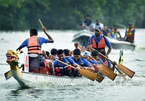 (250601) — KOTTE, 1 junio, 2025 (Xinhua) — Imagen del 31 de mayo de 2025 de personas participando en el Festival de Botes del Dragón 2025 en el Campeonato de Botes del Dragón de la Copa de la Amistad China-Sri Lanka, en Kotte, Sri Lanka. En un gesto de diplomacia deportiva e intercambio cultural, la Embajada de China en Sri Lanka ha donado cinco botes del dragón de estándar internacional para 12 personas al Ministerio de Asuntos Juveniles y Deportes de Sri Lanka. La donación se hizo formalmente el sábado en el Festival de Botes del Dragón 2025 en el Campeonato de Botes del Dragón de la Copa de la Amistad China-Sri Lanka. (Xinhua/Ajith Perera) (oa) (rtg) (da)