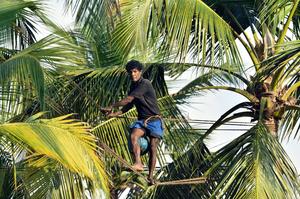 SRI LANKA-NEGOMBO-RECOLECCION DE SAVIA DE COCO