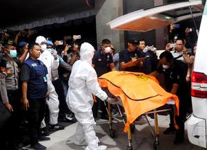 (251003) -- SURABAYA, 3 octubre, 2025 (Xinhua) -- Empleados médicos trasladan una bolsa de cadáveres de víctimas del colapso de un edificio escolar en el Hospital Bhayangkara, en Surabaya, en Java Oriental, Indonesia, el 3 de octubre de 2025. La cifra de muertos por el derrumbe de un edificio escolar en la provincia de Java Oriental, en Indonesia, ascendió a ocho, informó el viernes un alto funcionario de rescate. (Xinhua/Sahlan Kurniawan) (jg) (rtg) (ce)