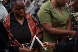 (250619) -- MTHATHA, 19 junio, 2025 (Xinhua) -- Personas se reúnen para lamentarse por las víctimas de las inundaciones, en Mthatha, en la provincia de Cabo Oriental, Sudáfrica, el 19 de junio de 2025. La provincia de Cabo Oriental de Sudáfrica conmemoró el jueves un Día de Luto provincial para honrar a las víctimas de las devastadoras inundaciones de la semana pasada, con la cifra de muertos incrementando a 92. (Xinhua/Gobierno Provincial de Cabo Oriental de Sudáfrica) (rtg) (ra) (vf)