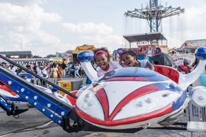 (260403) -- JOHANNESBURGO, 3 abril, 2026 (Xinhua) -- Imagen del 2 de abril de 2026 de niños a bordo de atracciones durante el Rand Show 2026, en Johannesburgo, Sudáfrica. El Rand Show, un evento anual de entretenimiento y compras en Sudáfrica, se lleva a cabo del 2 al 6 de abril en el Centro de Exposiciones de Johannesburgo. (Xinhua/Shiraaz Mohamed) (rtg) (ra) (ce)