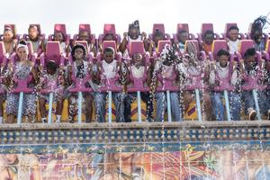 (260403) -- JOHANNESBURGO, 3 abril, 2026 (Xinhua) -- Imagen del 2 de abril de 2026 de visitantes a bordo de atracciones durante el Rand Show 2026, en Johannesburgo, Sudáfrica. El Rand Show, un evento anual de entretenimiento y compras en Sudáfrica, se lleva a cabo del 2 al 6 de abril en el Centro de Exposiciones de Johannesburgo. (Xinhua/Shiraaz Mohamed) (rtg) (ra) (ce)