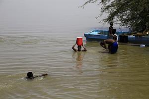 (250526) — OMDURMAN, 26 mayo, 2025 (Xinhua) — Imagen del 25 de mayo de 2025 de ciudadanos sudaneses recogiendo agua del Nilo, cerca del barrio de Al-Hattana, en la ciudad de Omdurman, en el norte de Jartum, capital de Sudán. En los últimos días, el estado de Jartum ha estado sofocante bajo un sol abrasador, con temperaturas que han alcanzado los 45°Celsius, según el último informe de la Autoridad Meteorológica de Sudán. Esta intensa ola de calor ha exacerbado los problemas existentes que enfrentan los residentes, incluidos cortes de electricidad y una grave crisis de agua potable debido a los ataques con drones contra centrales eléctricas durante los conflictos armados. (Xinhua/Mohamed Khidir) (oa) (ah) (vf)