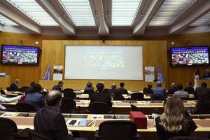 (251107) -- GINEBRA, 7 noviembre, 2025 (Xinhua) -- Imagen del 5 de noviembre de 2025 de personas asistiendo a la 20° sesión del Foro Mundial sobre Asentamientos Humanos y la ceremonia de premiación para Nuevas Ciudades y Asentamientos Humanos Sostenibles en la sede de la Organización Meteorológica Mundial, en Ginebra, Suiza. El evento se llevó a cabo el martes y el miércoles. El foro emitió la Declaración de Ginebra. Diecinueve proyectos fueron premiados, nueve de los cuales fueron de China. (Xinhua/Lian Yi) (jg) (rtg) (da)