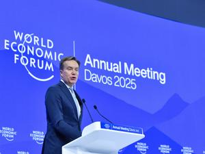 (250124) — DAVOS, 24 enero, 2025 (Xinhua) — El presidente del Foro Económico Mundial (FEM), Borge Brende, pronuncia un discurso de clausura durante la reunión anual del FEM, en Davos, Suiza, el 24 de enero de 2025. El FEM concluyó su reunión anual 2025 aquí el viernes. (Xinhua/Lian Yi) (rtg) (ra) (vf)