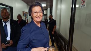 (250707) -- PARAMARIBO, 7 julio, 2025 (Xinhua) -- Imagen cedida por el Suriname Herald del 6 de julio de 2025 de Jennifer Geerlings-Simons sonriendo después de ser elegida como presidenta de Surinam, en la Asamblea Nacional de Surinam, en Paramaribo, Surinam. (Xinhua/Suriname Herald) (rtg) (ah) (vf)