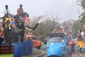 TAILANDIA-AYUTTHAYA-FESTIVAL SONGKRAN-ELEFANTES