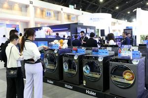 (250927) -- BANGKOK, 27 septiembre, 2025 (Xinhua) -- Imagen del 26 de septiembre de 2025 de personas visitando el estand del fabricante chino de electrodomésticos Haier durante la Exposición de Cooperación Tailandia-China 2025, en Bangkok, Tailandia. La exposición comenzó aquí el viernes para celebrar el 50 aniversario de las relaciones diplomáticas entre China y Tailandia, destacando los amplios esfuerzos conjuntos en comercio, inversión, educación y empleo. (Xinhua/Rachen Sageamsak) (jg) (rtg) (vf)