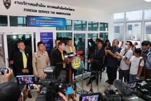 (250207) -- YANGON, 7 febrero, 2025 (Xinhua) -- Imagen tomada el 6 de febrero de 2025 del viceprimer ministro tailandés, Phumtham Wechayachai (c), asistiendo a una conferencia de prensa, en la provincia de Tak, Tailandia. Las autoridades tailandesas han recibido a 61 ciudadanos extranjeros que se cree son víctimas de operaciones de tráfico de personas y estafas en Myanmar, dijo el jueves el viceprimer ministro, Phumtham Wechayachai. Entre las personas rescatadas había 39 ciudadanos chinos, 13 indios, cinco indonesios y uno de Etiopía, Pakistán, Malasia y Kazajistán, dijo Phumtham durante su supervisión de la entrega en el puesto de control fronterizo de Mae Sot, en la provincia tailandesa de Tak. (Xinhua/Departamento de Relaciones Públicas de Tak) (oa) (ra) (vf)