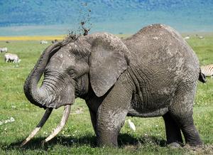(250428) -- NGORONGORO, 28 abril, 2025 (Xinhua) -- Imagen del 26 de abril de 2025 de un elefante en el Área de Conservación de Ngorongoro, en el norte de Tanzania. El Área de Conservación de Ngorongoro, que cuenta con diversos paisajes, alberga una rica variedad de animales salvajes. En 1979 fue declarada Patrimonio de la Humanidad por la UNESCO. (Xinhua/Li Yahui) (oa) (ah) (vf)
