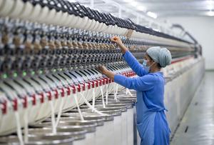 (250929) — DUSAMBE, 29 septiembre, 2025 (Xinhua) — Imagen del 12 de septiembre de 2025 de una mujer trabajando en el Parque Industrial Agrícola y Textil Danghara China-Tayikistán, en Danghara, Tayikistán. En 2014, en el marco de la Iniciativa de la Franja y la Ruta, se estableció el Parque Industrial Agrícola y Textil Danghara China-Tayikistán. Aprovechando las fortalezas complementarias, el parque creó una zona de demostración de la cadena industrial completa que abarca la siembra, el desmotado, el hilado, el tejido, el teñido y la producción de prendas de vestir del algodón. (Xinhua/Li Renzi) (rtg) (ah) (vf)