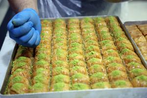 (251117) -- ANKARA, 17 noviembre, 2025 (Xinhua) -- Imagen del 14 de noviembre de 2025 de un panadero elaborando baklavas, un postre tradicional turco, en Ankara, Turquía. El baklava es un dulce turco hecho de capas de masa rellena, mantequilla y tiene el aroma del jarabe dulce. (Xinhua/Mustafa Kaya) (oa) (ah) (vf)