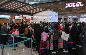 (260311) -- ESTAMBUL, 11 marzo, 2026 (Xinhua) -- Imagen del 9 de marzo de 2026 de compatriotas taiwaneses que quedaron varados en Medio Oriente esperando para registrarse en el Aeropuerto de Estambul, en Estambul, Turquía. Más de 70 compatriotas taiwaneses que se encontraban varados en Medio Oriente regresaron a Taiwan el martes, tras pasar por Shanghai. (Xinhua/Liu Lei) (ah) (ra) (ce)