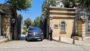 (250725) -- ESTAMBUL, 25 julio, 2025 (Xinhua) -- Un vehículo de la delegación alemana se retira del Consulado General de Irán, en Estambul, Turquía, el 25 de julio de 2025. Las conversaciones sobre el programa nuclear entre Irán y los tres países europeos Francia, Alemania y Reino Unido, conocidos colectivamente como los E3, comenzaron en Estambul, Turquía, el viernes por la mañana, reportó la agencia semioficial de noticias Tasnim. (Xinhua/Safar Rajabov) (rtg) (ra) (vf)