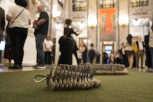 (251024) -- MONTEVIDEO, 24 octubre, 2025 (Xinhua) -- Imagen del 23 de octubre de 2025 de una escultura que representa una serpiente vista en la 6ª Bienal de Montevideo "Amazonas Ancestral", en el Palacio Legislativo, en Montevideo, capital de Uruguay. (Xinhua/Nicolás Celaya) (nc) (oa) (ra) (ce)
