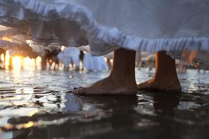 (260203) -- MONTEVIDEO, 3 febrero, 2026 (Xinhua) -- Imagen del 2 de febrero de 2026 de una mujer participando durante la celebración de Iemanjá, en la playa Ramírez, en Montevideo, capital de Uruguay. (Xinhua/Nicolás Celaya) (nc) (oa) (ah) (vf)