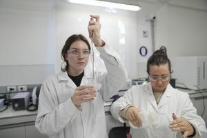 (250429) -- MONTEVIDEO, 29 abril, 2025 (Xinhua) -- Imagen del 24 de abril de 2025 de estudiantes de química participando en una clase en el Laboratorio Conjunto entre Uruguay y China de bio-nano-farma de la Facultad de Química de la Universidad de la República, en Montevideo, capital de Uruguay. Científicos uruguayos y chinos llevan a cabo varios proyectos de investigación conjuntos en el campo interdisciplinario de la bio-nano-farma, en la búsqueda de avances en tratamientos contra el cáncer pancreático y las heridas causadas por la diabetes. (Xinhua/Nicolás Celaya) (nc) (rtg) (ah) (vf)