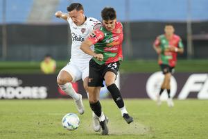 (250220) — MONTEVIDEO, 20 febrero, 2025 (Xinhua) — Imagen del 19 de febrero de 2025 del jugador Juan Manuel Gutiérrez (d), de Boston River de Uruguay, disputando el balón con Diego Sanhueza (i), de Ñublense de Chile, durante el partido de ida de la fase 2 de la Copa Conmebol Libertadores, celebrado en el Estadio Centenario, en Montevideo, capital de Uruguay. (Xinhua/Nicolás Celaya) (nc) (rtg) (ra) (ce)