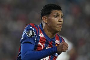 (250410) -- MONTEVIDEO, 10 abril, 2025 (Xinhua) -- Imagen del 9 de abril de 2025 del jugador Erick Pulga, de Bahía de Brasil, festejando una anotación durante el partido del grupo F de la jornada 2 de la Fase de Grupos de la Copa Conmebol Libertadores, ante Nacional de Uruguay, celebrado en el estadio Gran Parque Central, en Montevideo, capital de Uruguay. (Xinhua/Nicolás Celaya) (nc) (rtg) (ra) (vf)