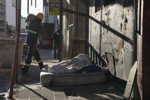 (250624) -- MONTEVIDEO, 24 junio, 2025 (Xinhua) -- Una persona duerme en la calle, en Montevideo, capital de Uruguay, el 24 de junio de 2025. El gobierno de Uruguay declaró el lunes una "alerta pública" de nivel rojo para personas en situación de calle ante el "frío extremo", lo que permite la "evacuación obligatoria" de indigentes a refugios. (Xinhua/Nicolás Celaya) (nc) (oa) (ra) (ce)