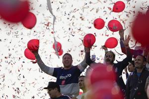 (250210) — MONTEVIDEO, 10 febrero, 2025 (Xinhua) — Imagen del 9 de febrero de 2025 de aficionados de Nacional reaccionando durante el partido correspondiente a la segunda fecha del Torneo Apertura del Campeonato Uruguayo de Fútbol entre Nacional y Peñarol, celebrado en el estadio Gran Parque Central, en Montevideo, capital de Uruguay. (Xinhua/Nicolás Celaya) (nc) (oa) (ah) (vf)