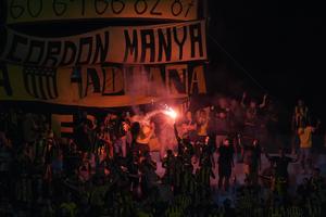 (250202) -- MONTEVIDEO, 2 febrero, 2025 (Xinhua) -- Imagen del 1 de febrero de 2025 de aficionados de Peñarol reaccionando durante el partido correspondiente a la primera fecha del Torneo Apertura del Campeonato Uruguayo de Fútbol, ante Progreso, celebrado en el estadio Centenario, en Montevideo, capital de Uruguay. (Xinhua/Nicolás Celaya) (nc) (rtg) (da)