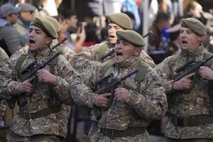 (250718) -- MONTEVIDEO, 18 julio, 2025 (Xinhua) -- Elementos del Ejército participan en un desfile durante el 195° aniversario de la Jura de la Constitución en la plaza Constitución, en la ciudad de Montevideo, capital de Uruguay, el 18 de julio de 2025. El presidente de Uruguay, Yamandú Orsi, encabezó el viernes en Montevideo el acto oficial por el 195° aniversario de la Jura de la Constitución, en el que el Poder Ejecutivo subrayó su compromiso con el desarrollo "armónico, inclusivo y sostenible". (Xinhua/Nicolás Celaya) (nc) (rtg) (ra) (vf)