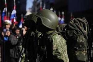 (250718) -- MONTEVIDEO, 18 julio, 2025 (Xinhua) -- Elementos del Ejército participan en un desfile durante el 195° aniversario de la Jura de la Constitución en la plaza Constitución, en la ciudad de Montevideo, capital de Uruguay, el 18 de julio de 2025. El presidente de Uruguay, Yamandú Orsi, encabezó el viernes en Montevideo el acto oficial por el 195° aniversario de la Jura de la Constitución, en el que el Poder Ejecutivo subrayó su compromiso con el desarrollo "armónico, inclusivo y sostenible". (Xinhua/Nicolás Celaya) (nc) (rtg) (ra) (vf)