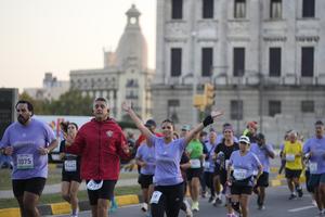 (250504) -- MONTEVIDEO, 4 mayo, 2025 (Xinhua) -- Corredores participan durante la décima edición del Maratón de Montevideo, en Montevideo, capital de Uruguay, el 4 de mayo de 2025. (Xinhua/Nicolás Celaya) (nc) (oa) (da)